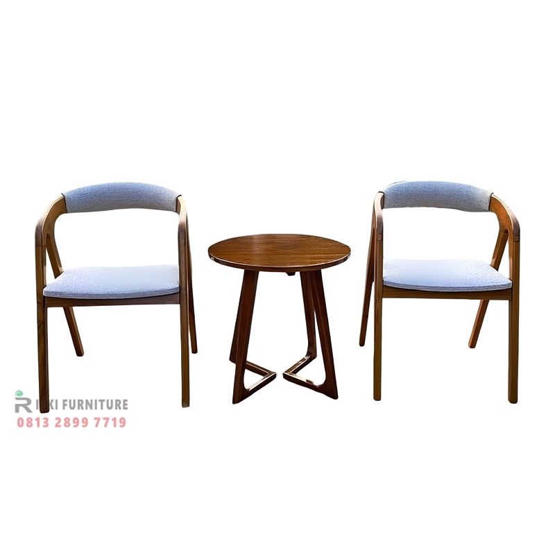 2 kursi 1 meja teras dari kayu jati dengan tambahan busa dari Jepara, cocok untuk mempercantik halaman depan rumah dengan sentuhan elegan dan natural. Tersedia meja kursi teras 2+1 dari bahan jati solid, desain minimalis modern dan nyaman untuk duduk santai di pagi atau sore hari. Kami menyediakan meja teras dan dua kursi jati Jepara dengan berbagai model, bisa custom sesuai kebutuhan Anda. Dapatkan meja kursi teras 2 kursi 1 meja minimalis langsung dari pengrajin mebel Jepara, kualitas premium dan pengiriman ke seluruh Indonesia.